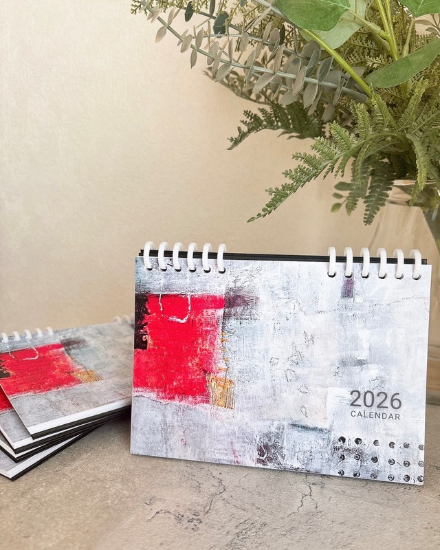 2026年のオリジナル卓上カレンダーを作りました。 すべて1冊ずつ手作業で仕上げています。 サイズは2L判(127mm×178mm) 2025年カレンダーよりひと回り大きくして 字を見えやすくしました。 サロンやデスク、リビングや玄関などに置いて 毎月違った色模様を楽しんでもらえたらうれしいです。 ◻︎写真と実物では多少色味が異なることがございます。また、印刷やカット、穴あけなどすべて1から手作業のため多少の歪みなどがある場合があります。あらかじめご了承の上、ご購入ください。 ◻︎販売作品は個人で利用することを目的としています。二次利用や転売目的でのご購入、また作品のコピー・無断転載はご遠慮ください。