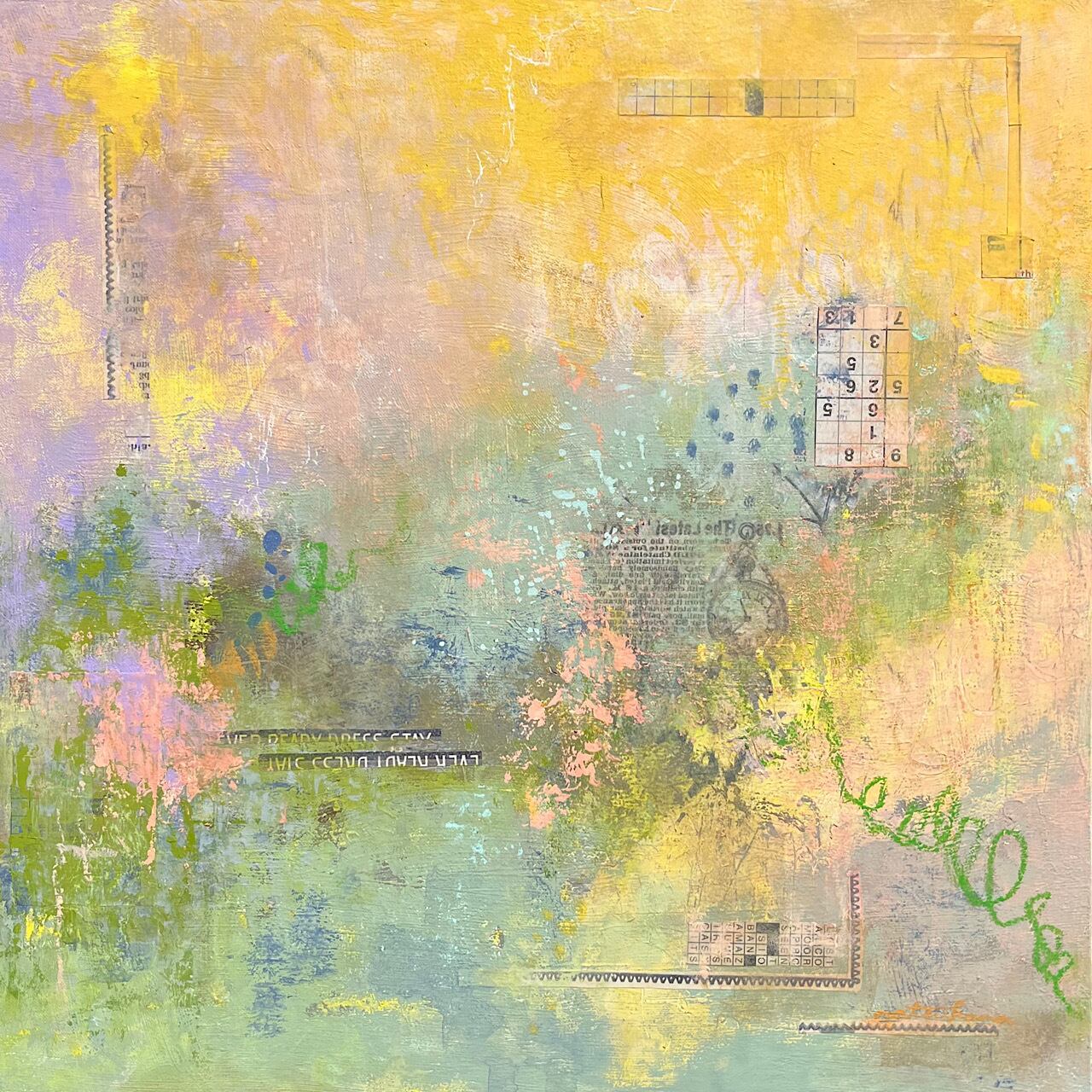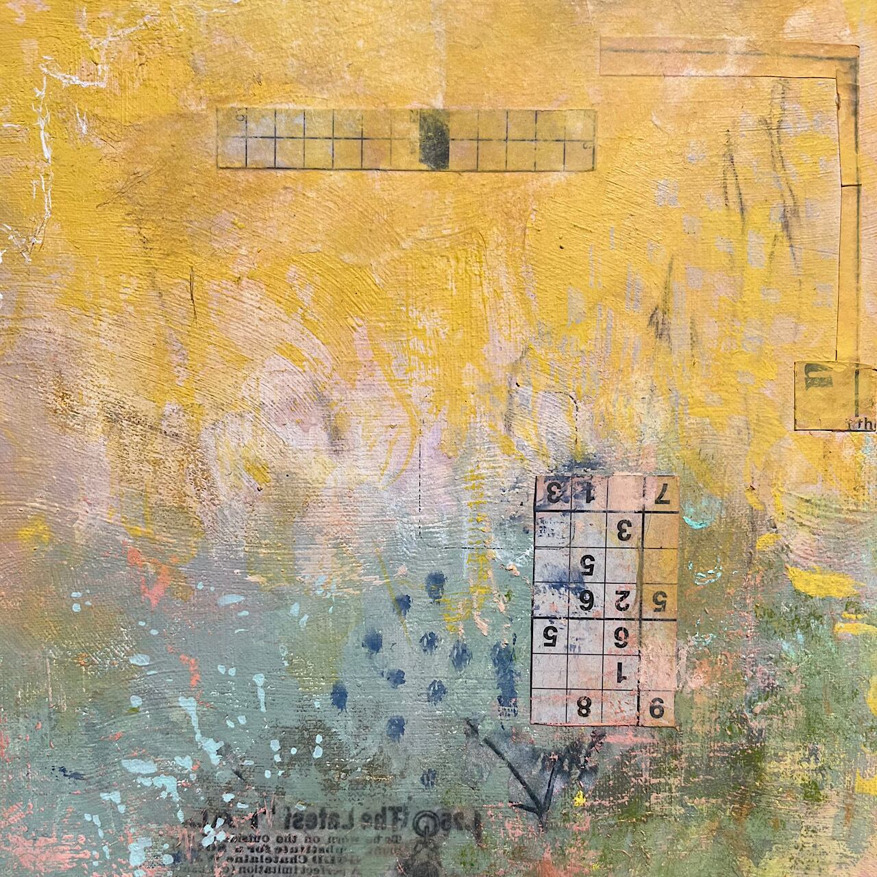英字新聞・オイルパステル・白ペン・