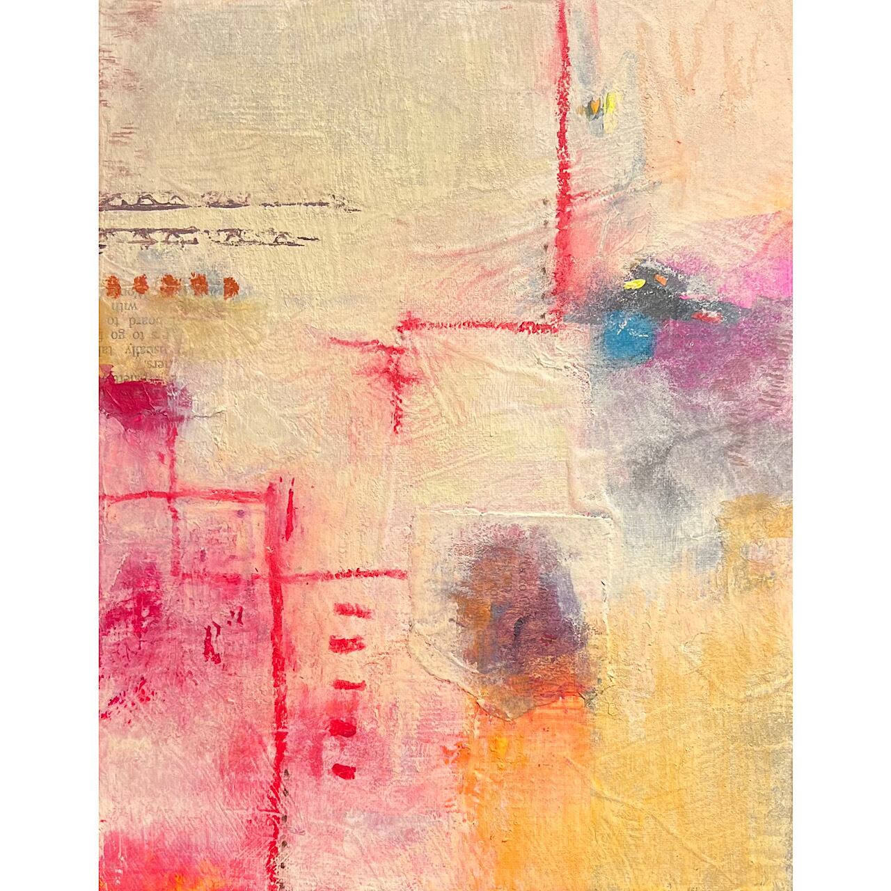 オイルパステル・英字新聞
